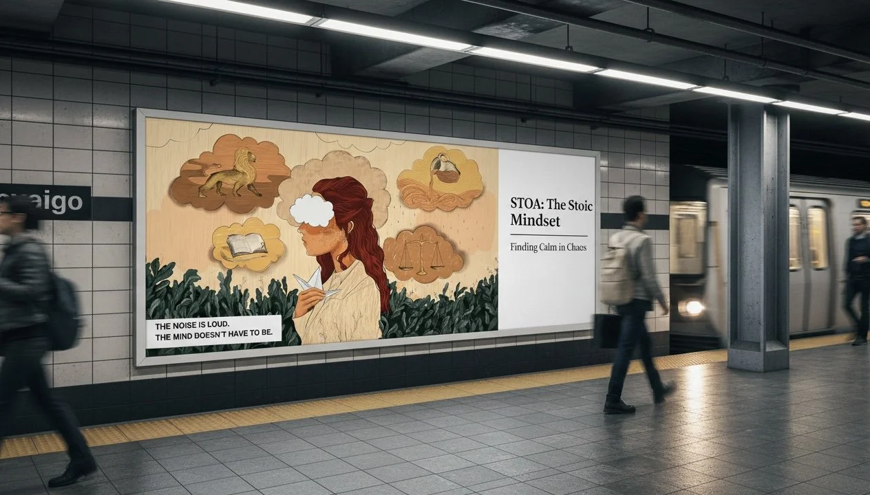 This project repositions philosophy as culture, not instruction — allowing Stoic ideas to be encountered emotionally and visually, rather than didactically. It’s an exploration of inner steadiness framed within the restless pace of the modern city.